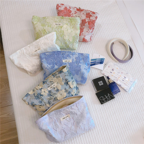 Große Kapazität Make-up-Taschen Benutzer definierte Logo Baumwolle Leinwand Futter Blume Kosmetik Make-up-Tasche mit Reiß verschluss